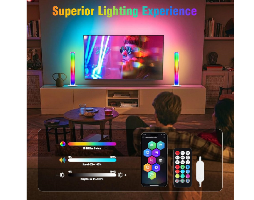 Create dynamic scene modes that adapt to your needs and desires, offering a plethora of colors and lighting effects. Whether you want a romantic or lively atmosphere, the Smart Flow LED Lamps will be your perfect companion for adding depth of color to your home theater.