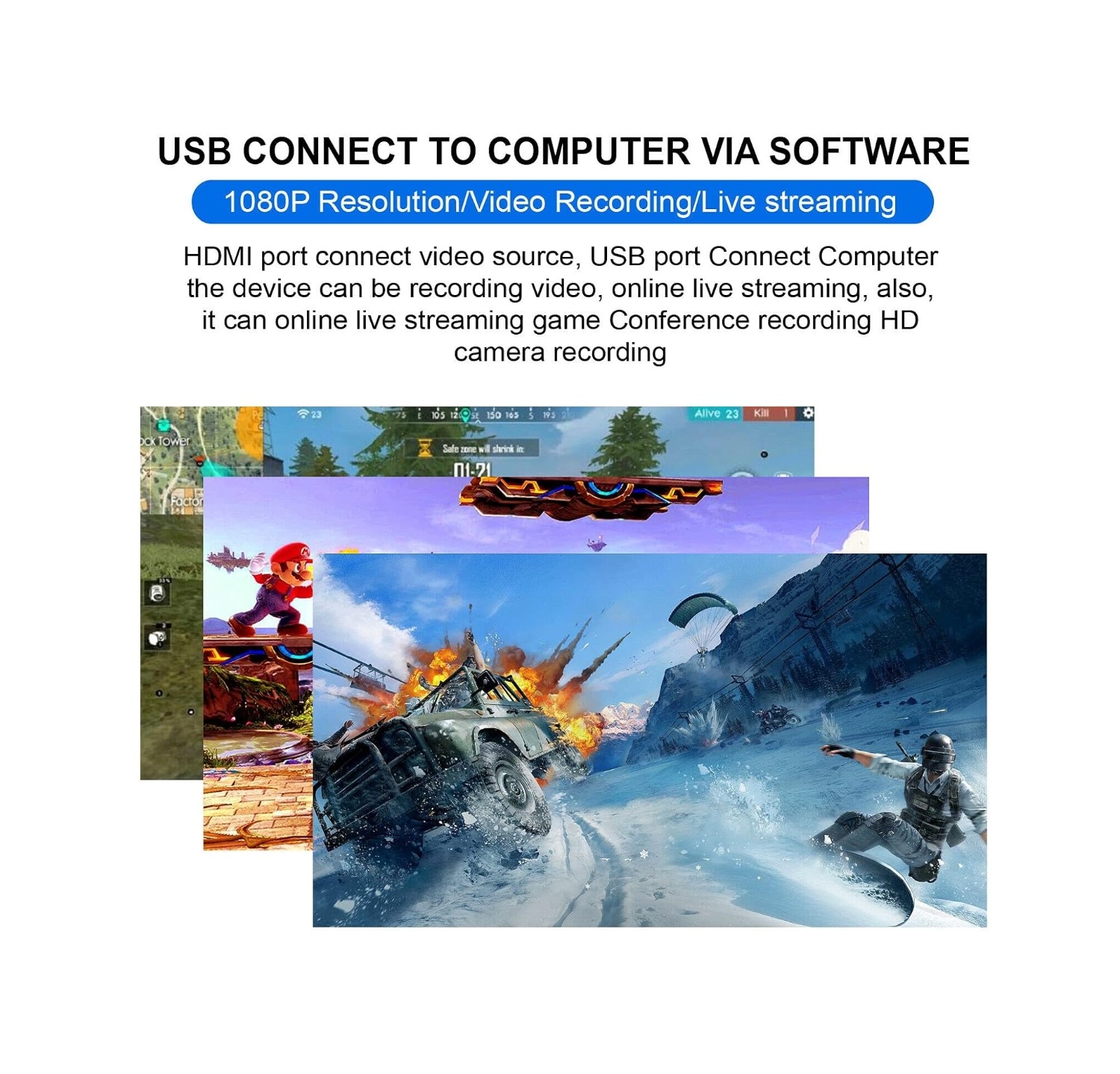 Supports a maximum input resolution of up to 4K. Supports a maximum output resolution of up to 1080P at 60fps. Supports 8/10/12-bit color depth. Supports most acquisition software, such as VLC, OBS, Amcap, etc. Supports Windows, Android, and Mac. Complies with USB UVC video specifications. Complies with USB UAC audio specifications. No external power supply required; compact and portable. HDMI Compatible Resolution: Supports a maximum input of 1080P. Video Input Format: 8/10/12-bit color depth. Video Output Mode: YUV, JPEG. Video Output Resolution: 1080P. Audio Format Support: L-PCM. Input Cable Length: ≤ 15 meters; standard HDMI AWG26 compatible cable. Maximum Operating Current: 0.4A/5VDC |