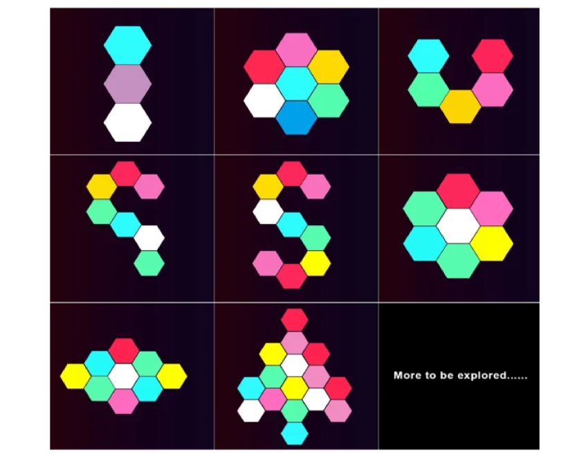 ● Dream Color, built-in addressable RGBW LEDs, allows the hexagon panel to display multiple color at the same time.