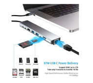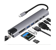 8 in 1 USB-C HUB 4K/30HZ: 1*HDMI+2*USB 3.0+1*PD+1*USB C+1*SD+1*TF+1*RJ45