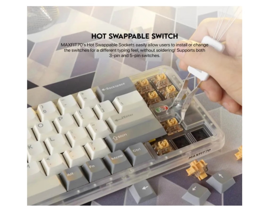 Programmable Encoder Knob Hot Swappable Switch with Supporting 3-Pin & 5-Pin Switches Tri-Mode Connection Multiple Mounting Styles BROWN SWITCH Top Material: ABS Plastic Keycaps: Double-Shot PBT Core Construction: ABS Plastic Wrist-rest: No Polling Rate: 1000Hz Weight: 563gr Dimension: 345*116*40mm Cable: 1.5m |